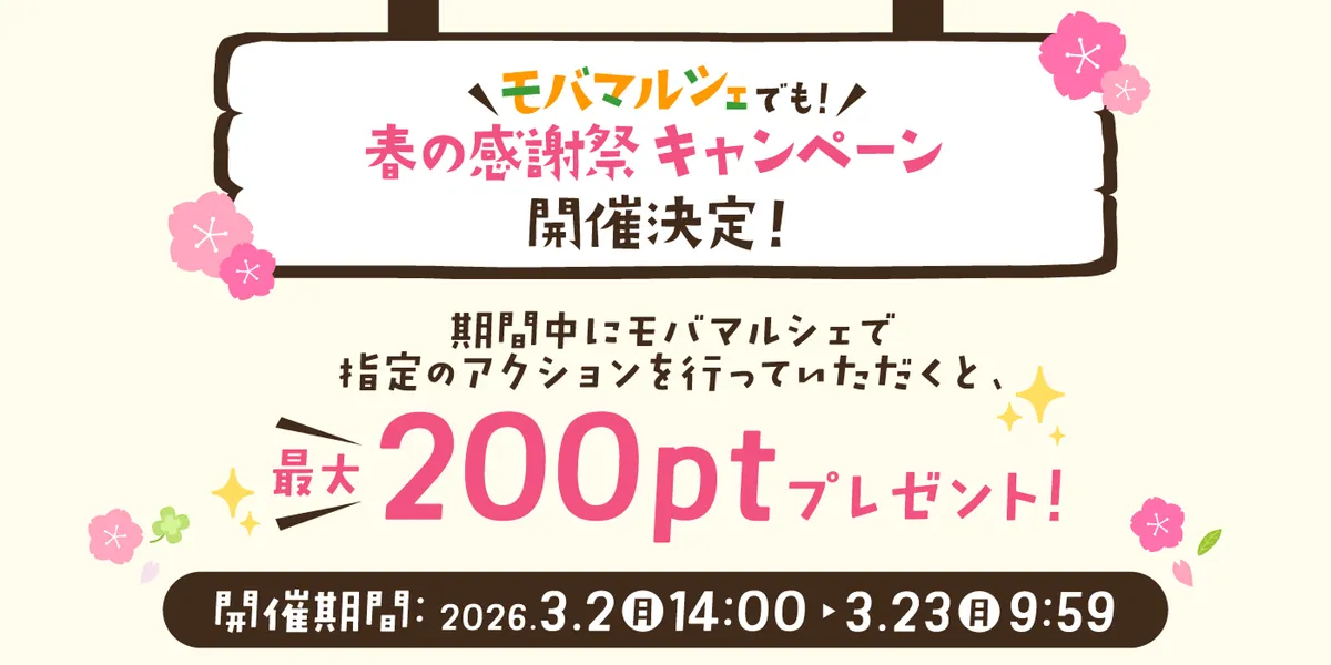 2026年3月2日(月)14時より、モバオクでは「モバオク春の感謝祭」を開催いたします🌸