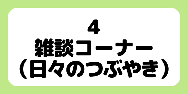 毎回テーマに沿って投稿をしてそこから交流をしていますが、「4雑談コーナー」があると、いつでも何の話題でも思ったことをつぶやけて交流のきっかけも増えるのかな、と思いました💡